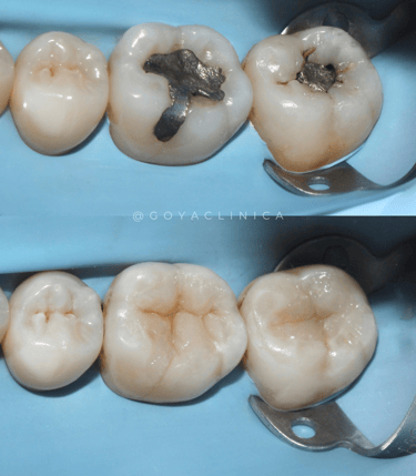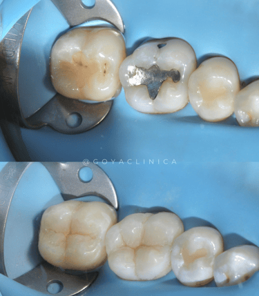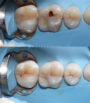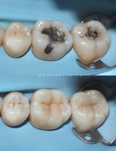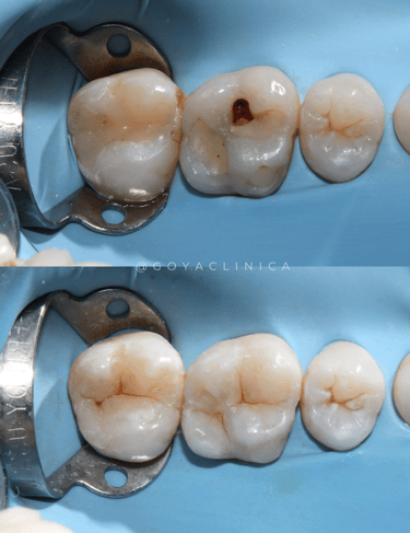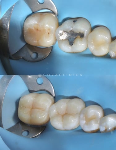 Restaurações que respeitam as características anatômicas dos dentes posteriores. Trabalhamos com isolamento absoluto, uma técnica que garante a melhora das propriedades adesivas da resina composta.